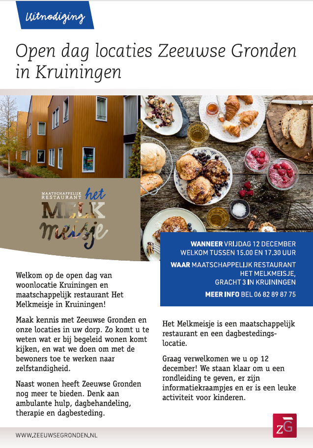 Welkom op de open dag van woonlocatie Kruiningen en het maatschappelijk restaurant het Melkmeisje in Kruiningen!